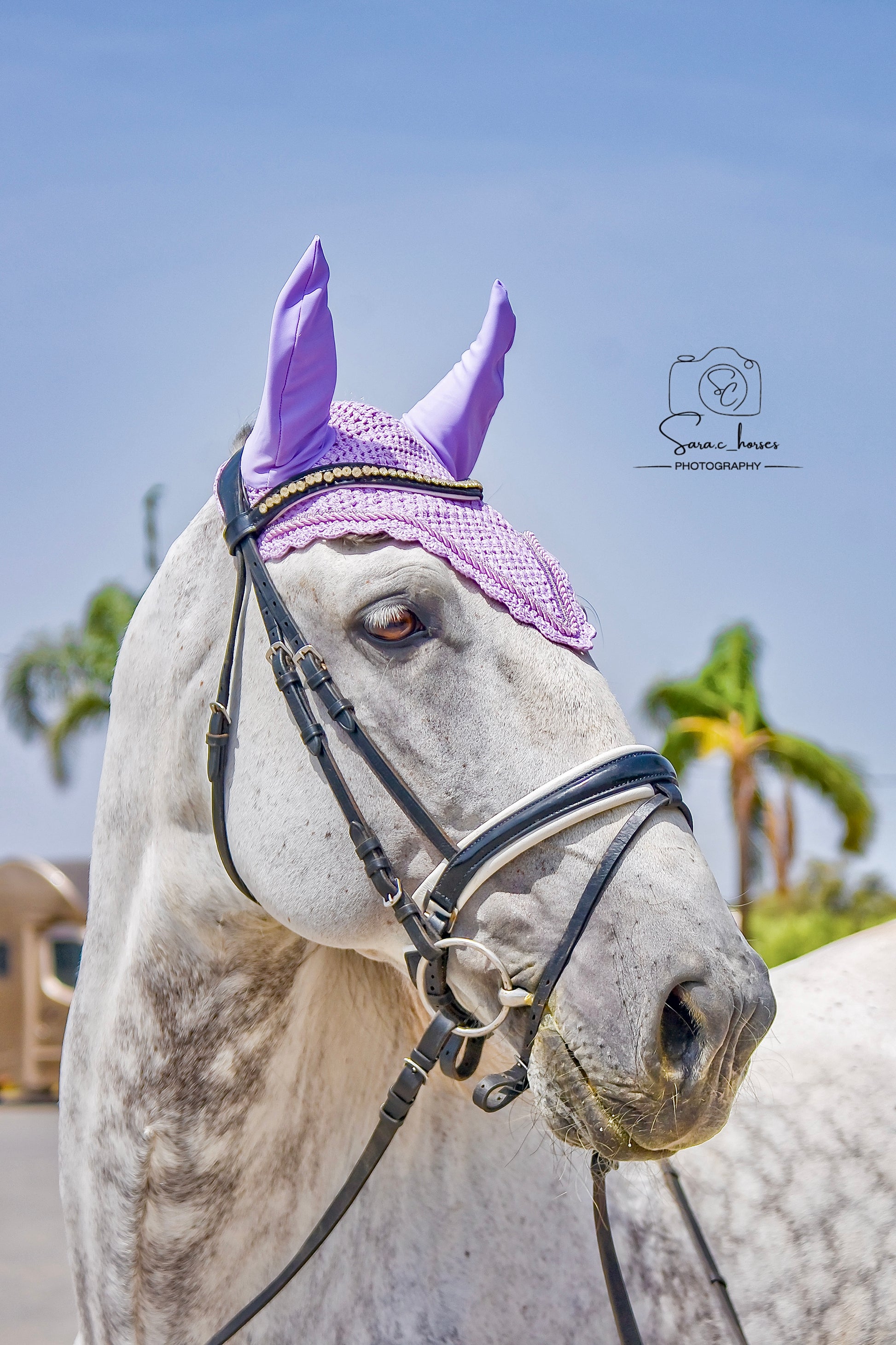 The Lilac bonnet: a vibrant purple piece from our design collection “made to order” blending style and comfort for your horse 💜