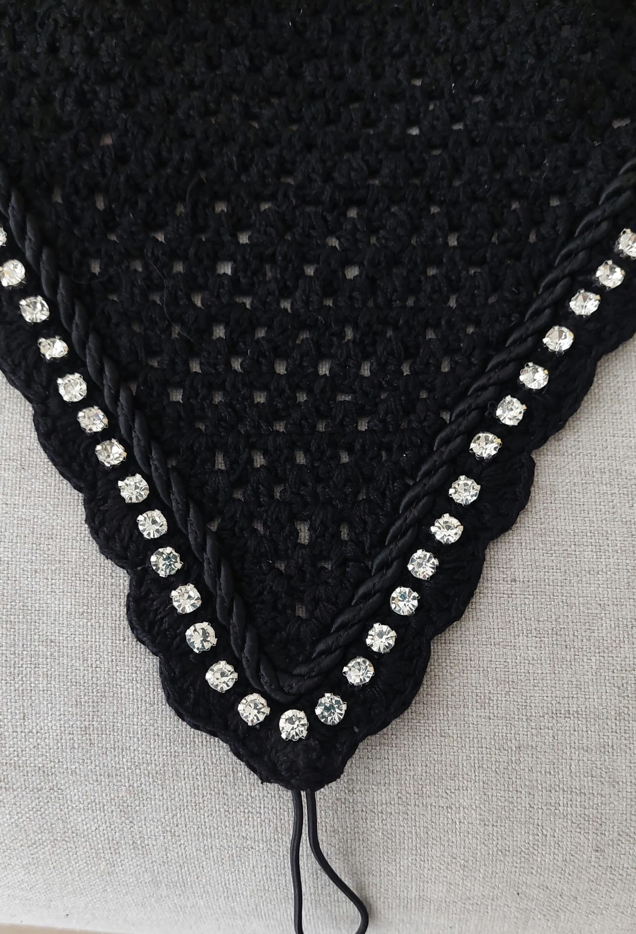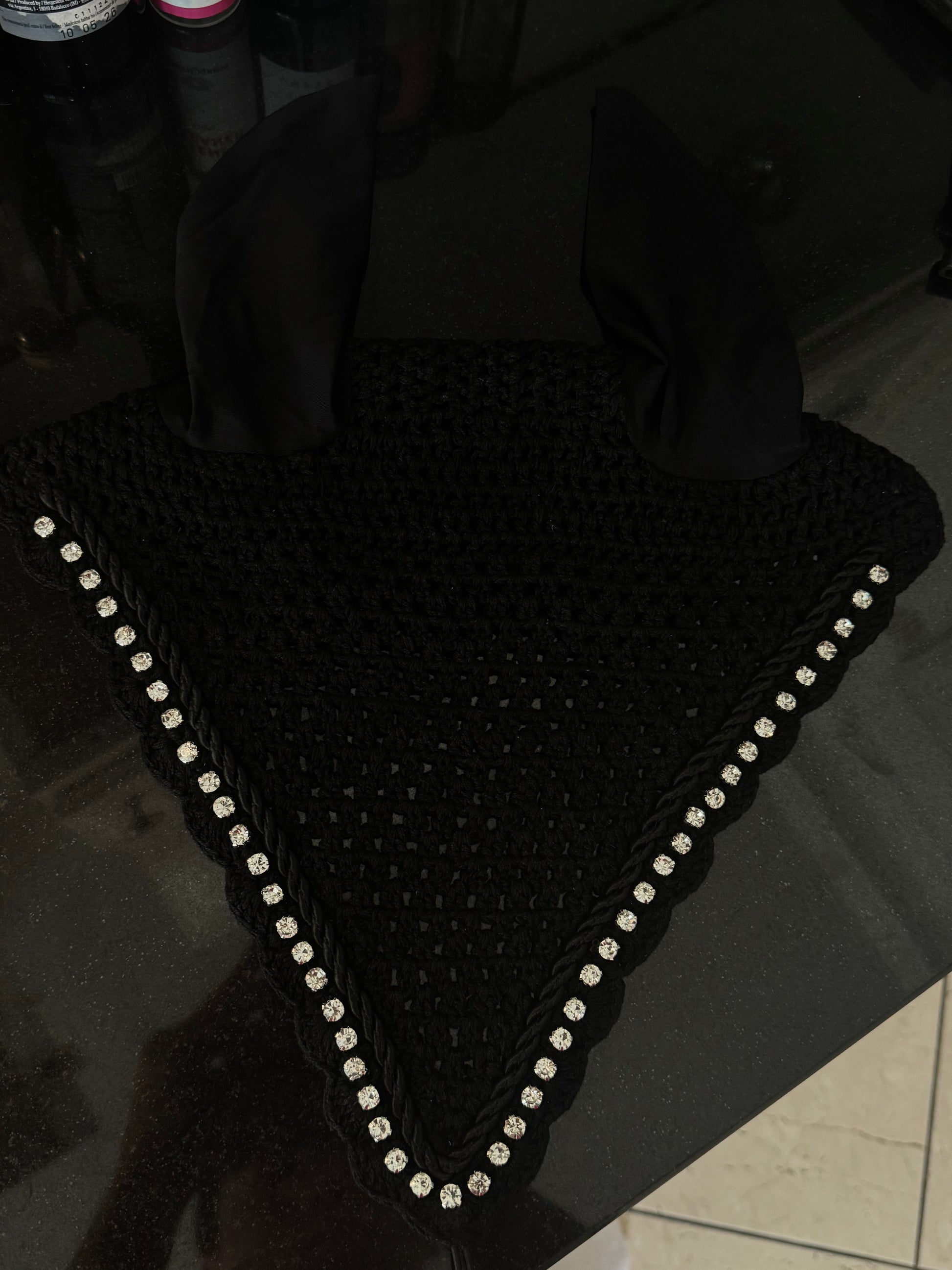 The Total Eclipse Ear Bonnet embodies timeless elegance. Handcrafted in deep black and finished with a line of clear crystals, it brings a refined sparkle to any look. The soft, breathable ears ensure comfort and style for every ride.